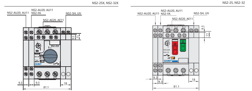 Автомати захисту двигуна серії NS2(X) з поворотною рукояткою призначені для захисту асинхронних двигунів з короткозамкненим ротором від перевантажень, тривалого пуску, коротких замикань та обриву фази. Ці пристрої відповідають вимогам IEC 60947-4-1 і використовуються в ланцюгах змінного струму частотою 50/60 Гц при напрузі до 660 В.