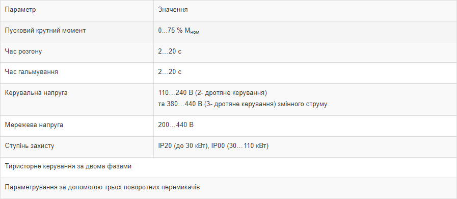 Тип пристрою: пристрій плавного пуску змінного струму