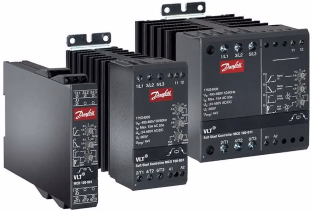 Плавний старт малих електродвигунів у поєднанні з функціональністю soft start controller Danfoss MCD 100 забезпечує контрольований пуск із мінімальними ривками та зниженими пусковими струмами. Пристрій стабілізує роботу обладнання в умовах слабких мереж і підвищеного механічного навантаження, роблячи його ідеальним рішенням для насосів, вентиляторів та малих промислових приводів.